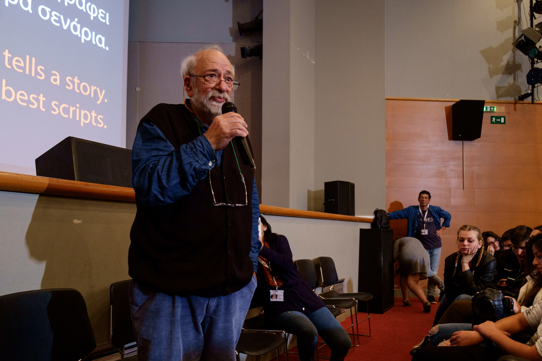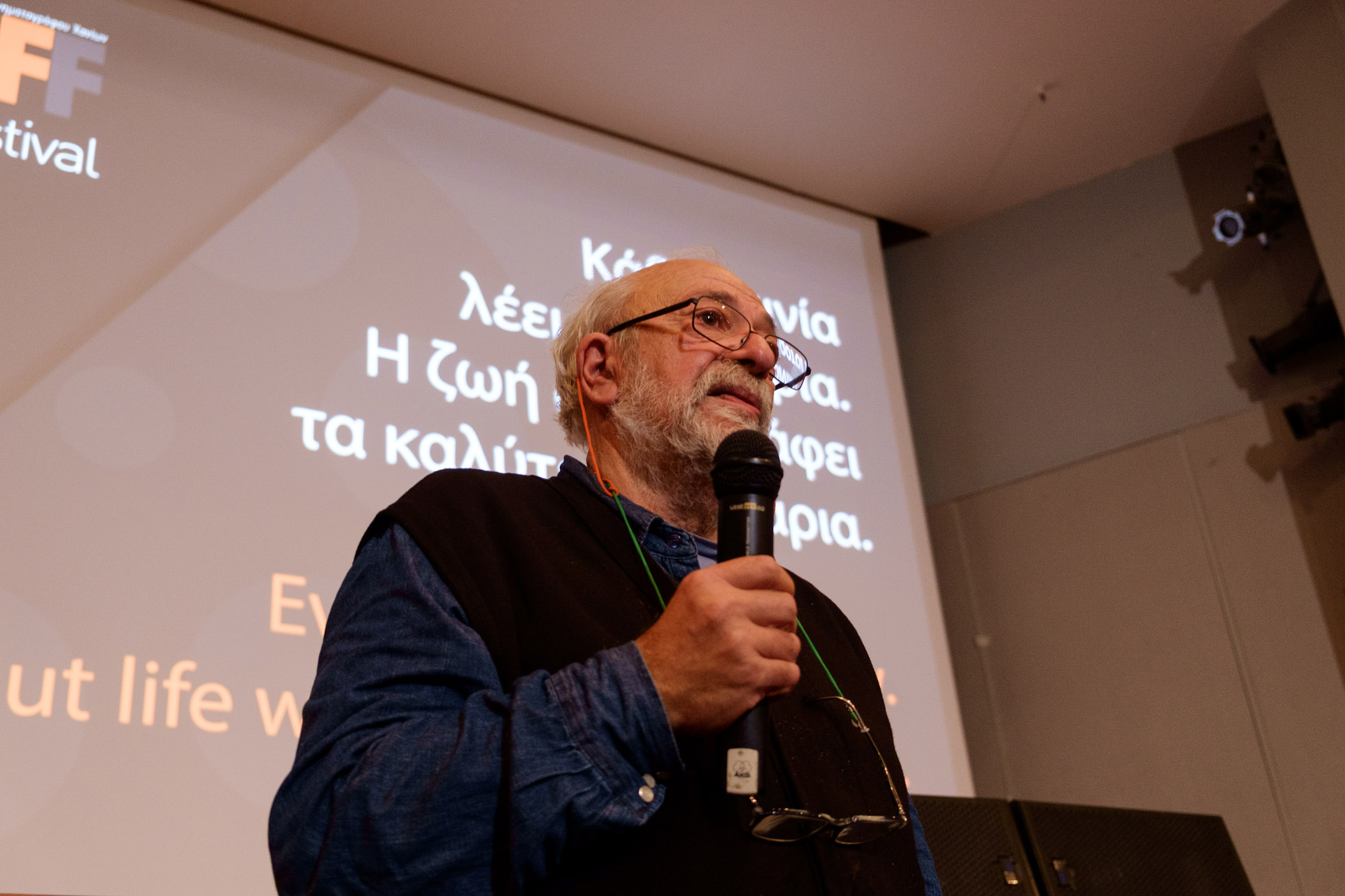 Επειδή έχω μεγαλώσει και έχω πάει σε πολλά φεστιβάλ και εκδηλώσεις αυτό που συμβαίνει σήμερα είναι μοναδικό. Δε θα το ξεχάσω ποτέ. Αλλά αυτό που λέω και στα παιδιά και το λέω και σε εσάς είναι αυτό που θα διαλέξετε, να το πιστέψετε σε αυτό και να το αγαπάτε κάθε μέρα. Αυτό που θα κάνετε στη δουλειά σας, να είναι χαρά. Εγώ το αγαπούσα πολύ και το αγαπάω ακόμα αυτό που κάνω. Πιστέψτε στον εαυτό σας, πιστέψτε σε ένα υπέροχο τόπο που ζούμε, ειδικά η Κρήτη είναι απίστευτη. Μελετήστε τους γείτονές σας, μελετήστε το σόι σας. Πάρτε μια κάμερα και γράψτε τον παππού σας να χορεύει, να τραγουδάει, να σας διηγηθεί ιστορίες. Έτσι θα αρχίσετε.