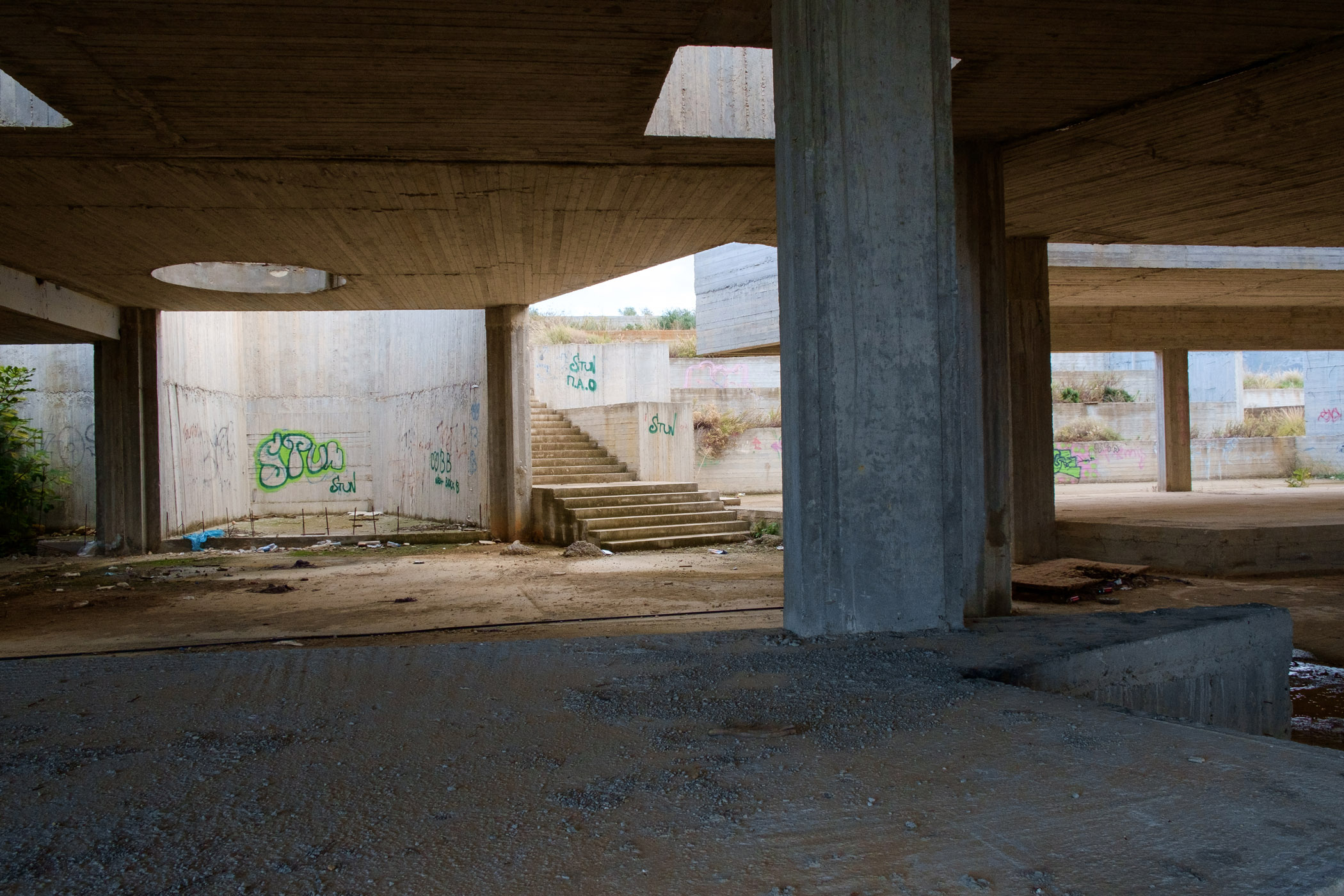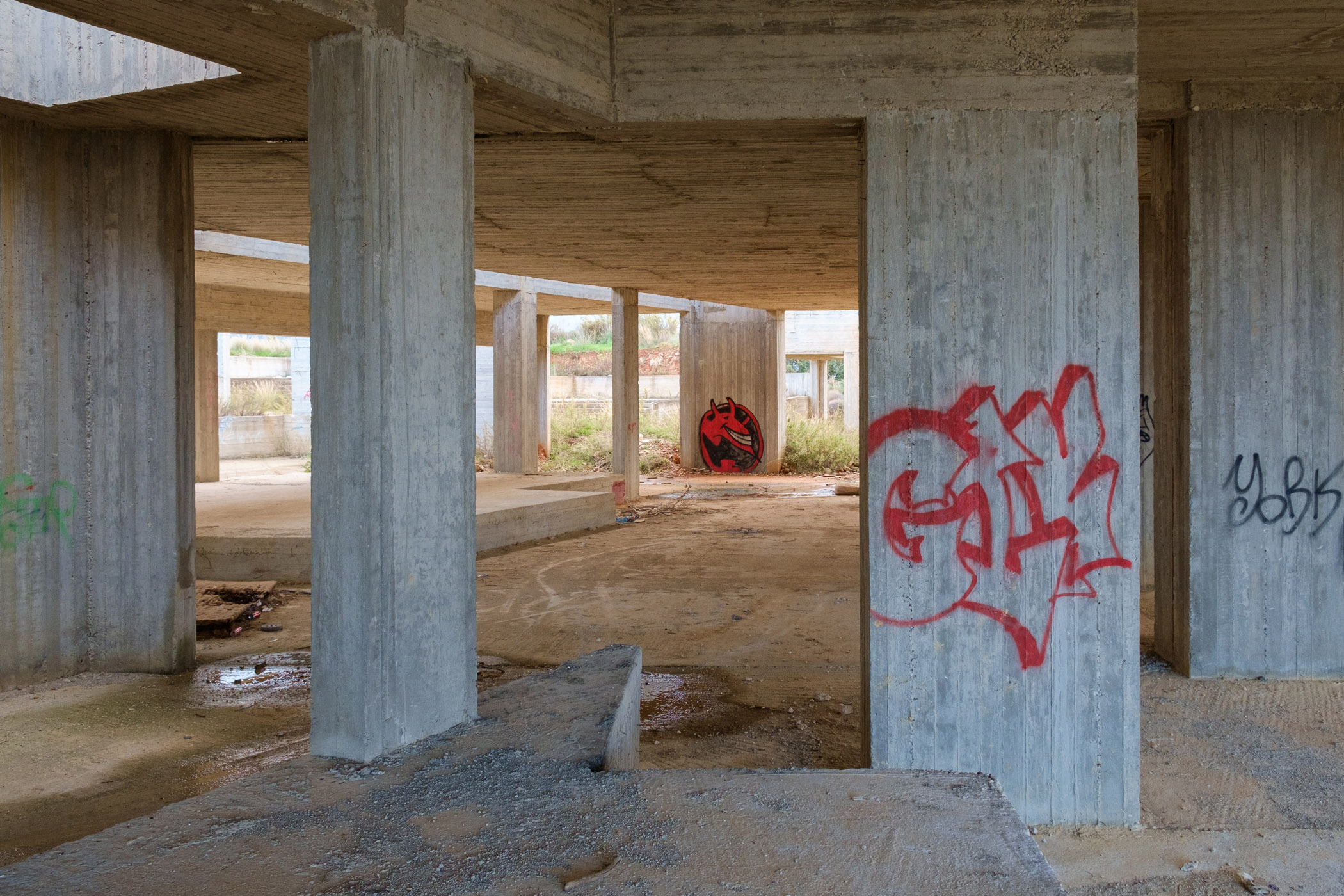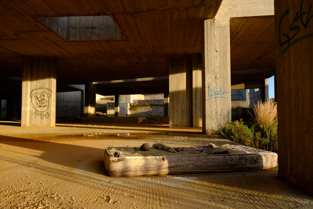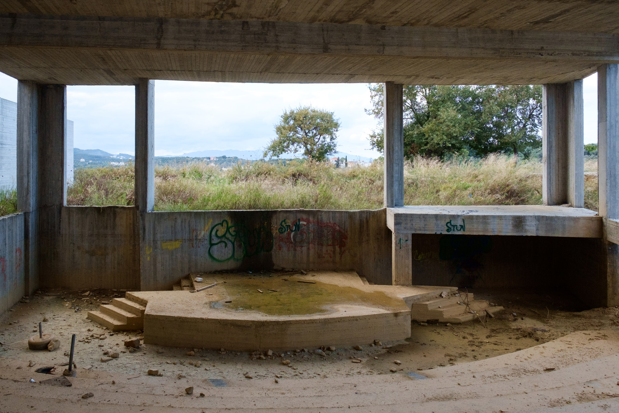Στο σημείο που θα έπρεπε να υπάρχει το μνημείο δεν υπάρχει παρά μια μουτζουρωμένη πινακίδα καλυμμένη από ψηλά χόρτα που ενημερώνει πως στο σημείο θα κατασκευαστεί το συγκρότημα με προϋπολογισμό 1.355.000 ευρώ. Γύρω – γύρω σκουπίδια, ένας ταιριαστός στολισμός για τον σκελετό ενός κτιρίου, τον τσιμεντένιο γκρι όγκο που το μόνο ιδιαίτερο χαρακτηριστικό είναι το μέγεθός του και το γεγονός ότι βρίσκεται δίπλα σε ένα νεκροταφείο.
