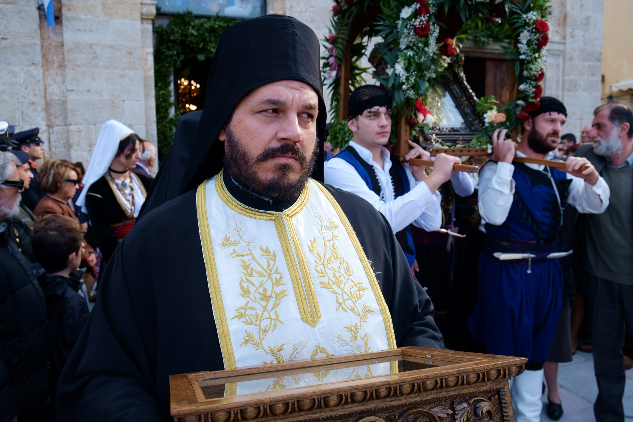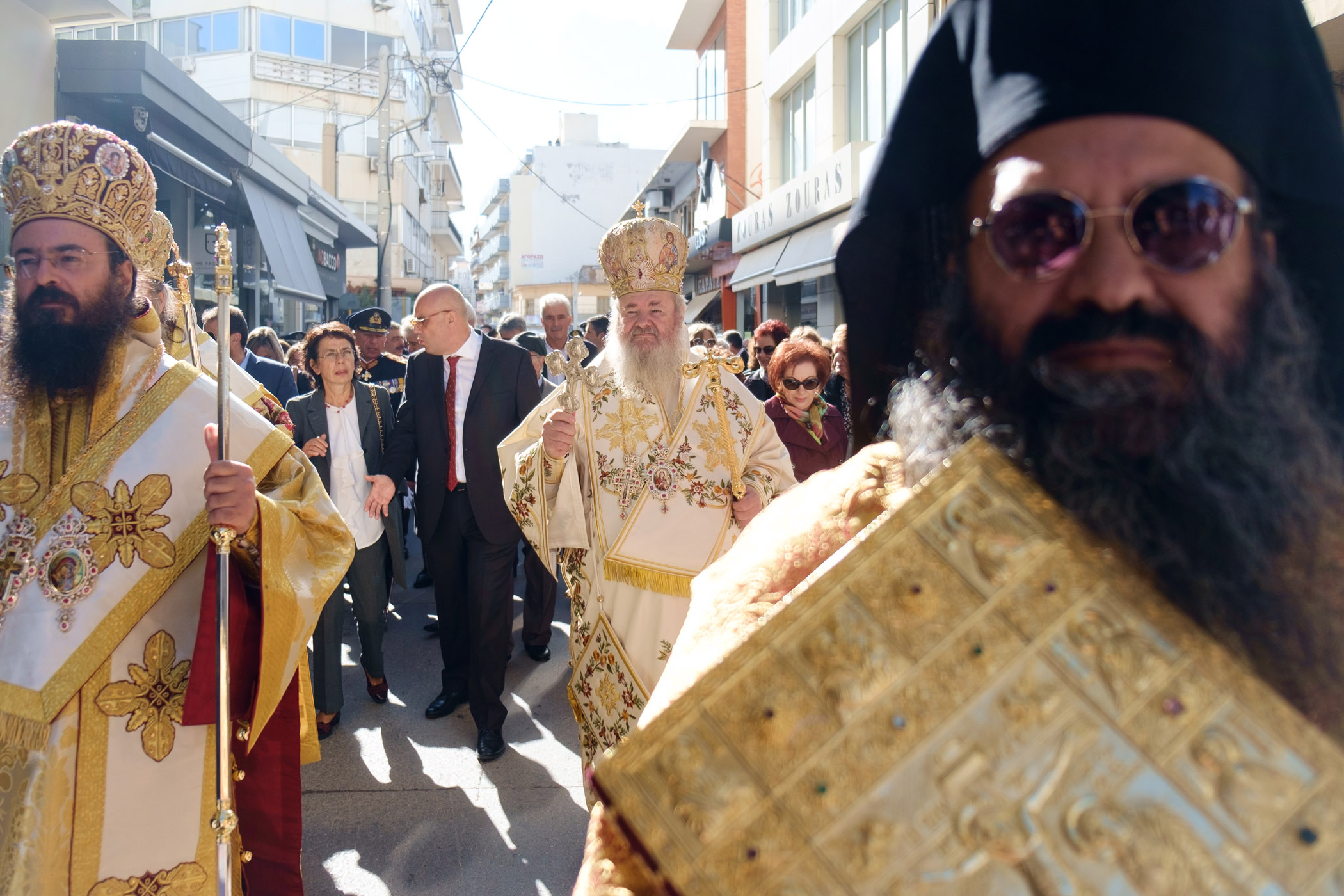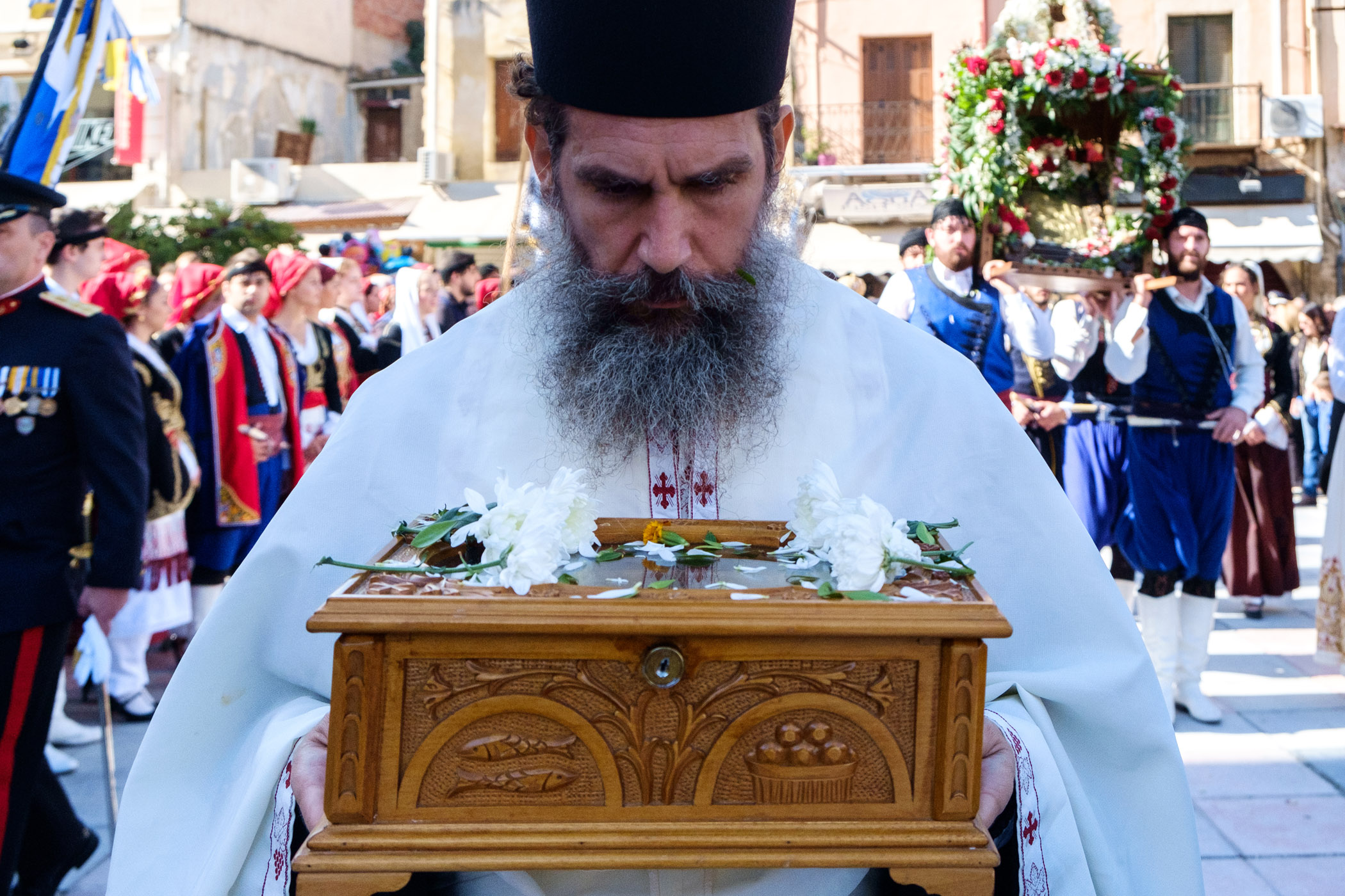 Κατόπιν, ακολούθησε η λιτανεία της εικόνας της Πολιούχου στους κεντρικούς δρόμους των Χανίων.
