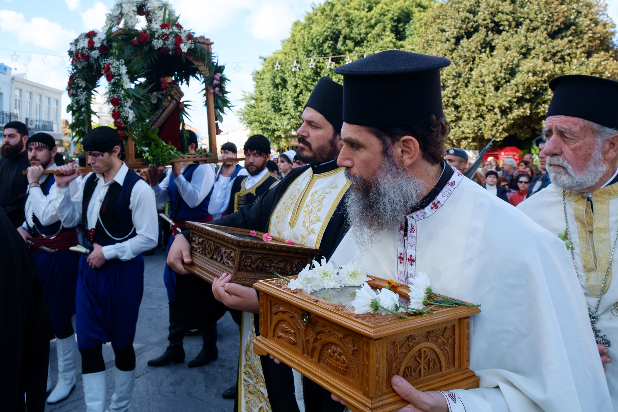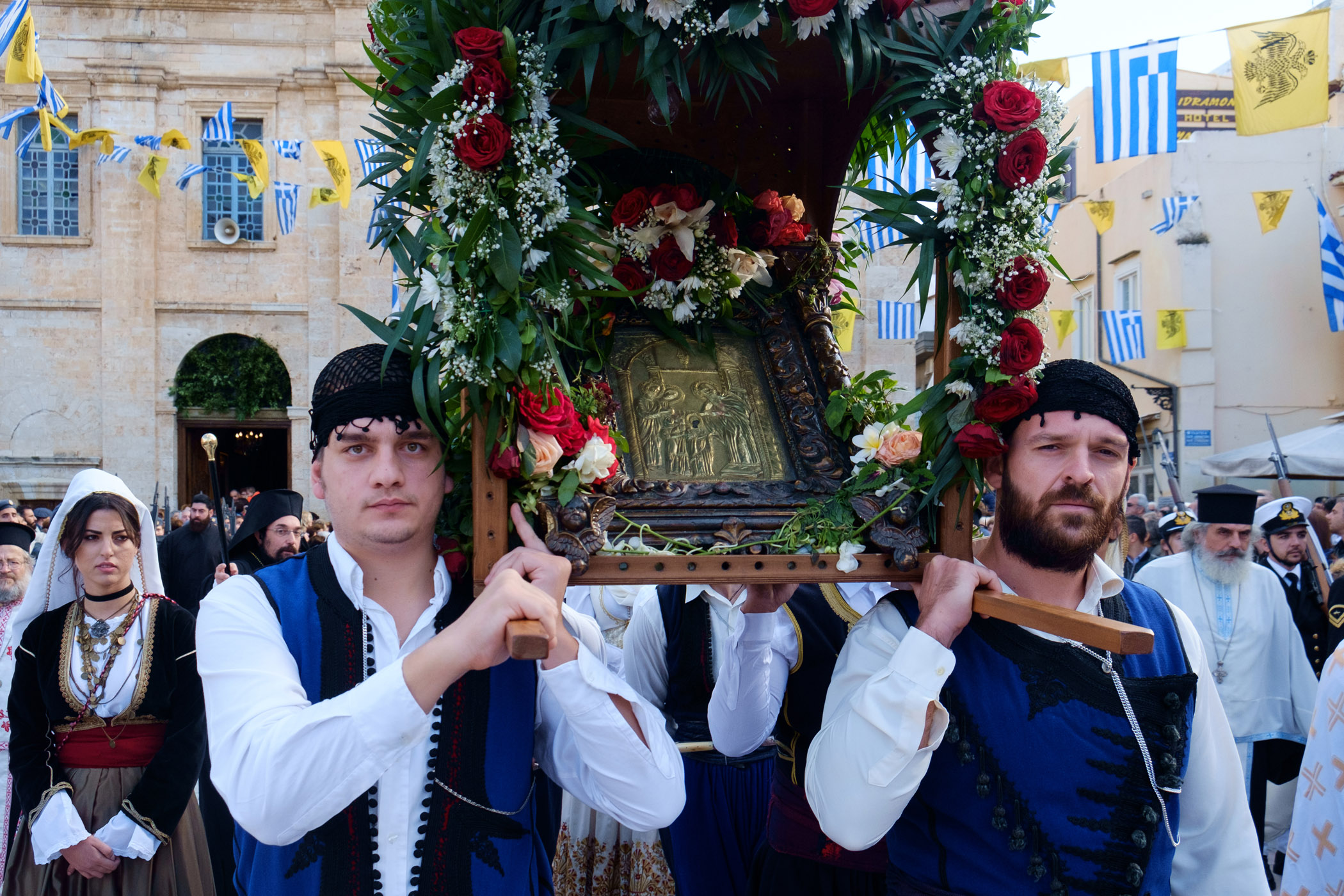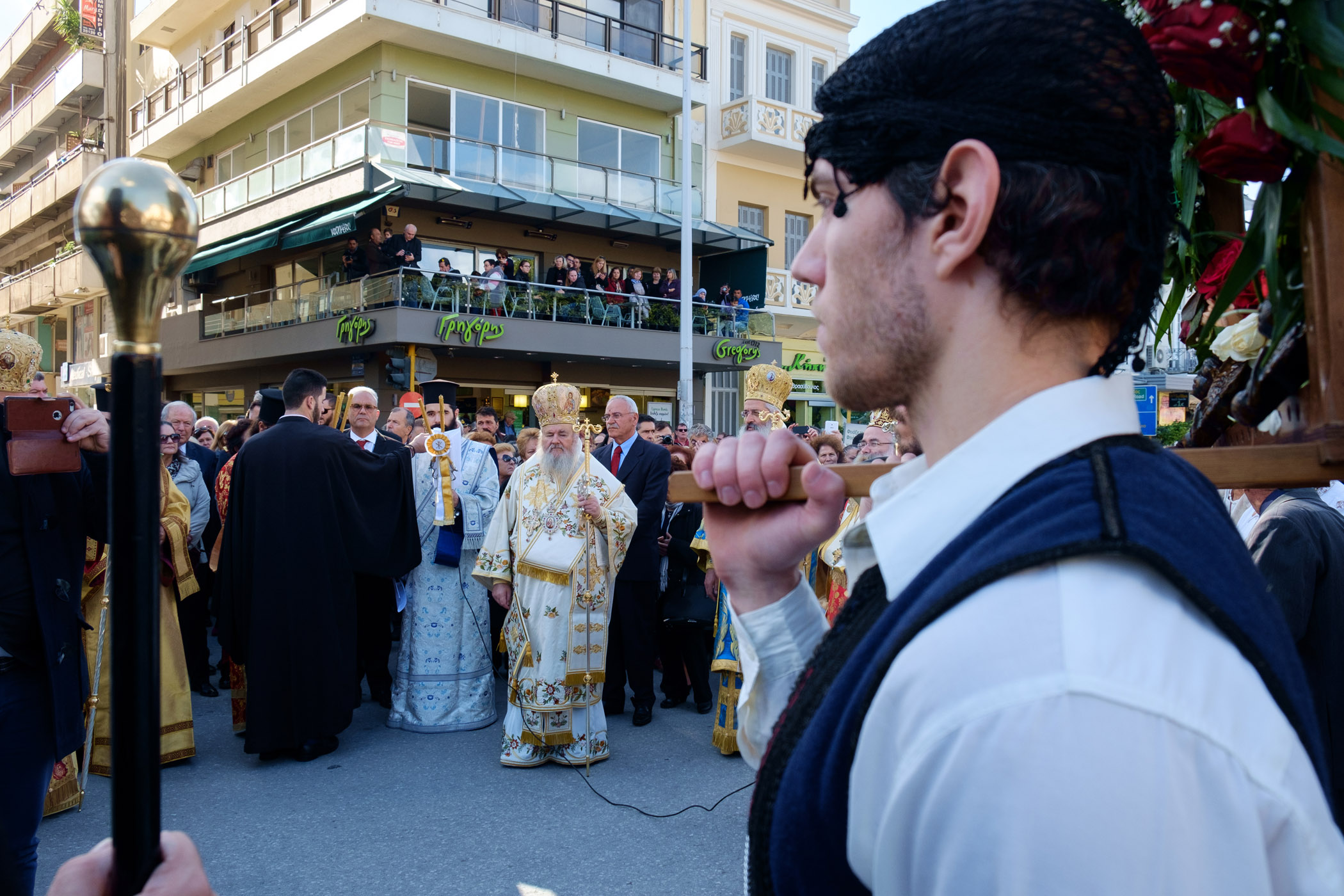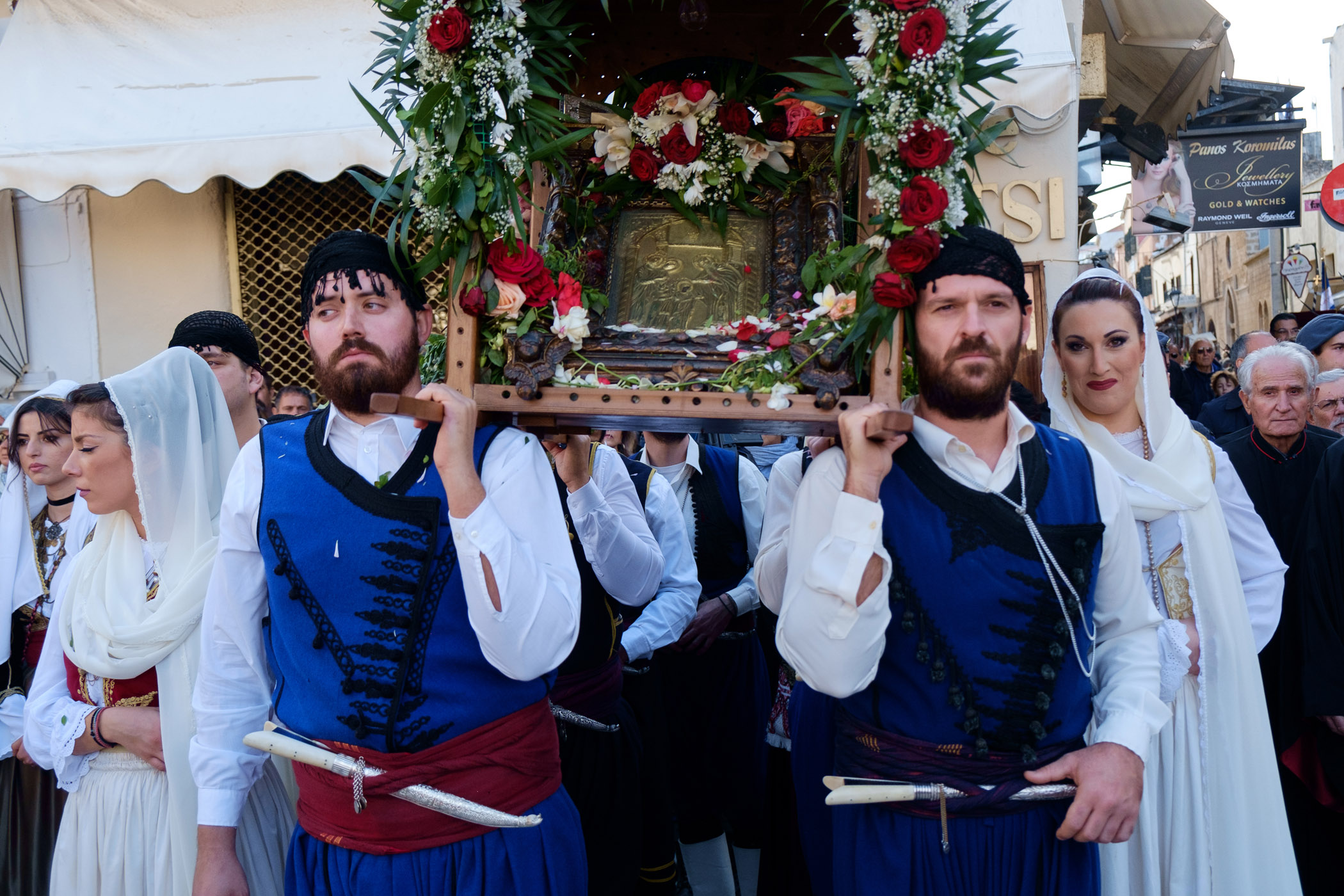 Κατόπιν, ακολούθησε η λιτανεία της εικόνας της Πολιούχου στους κεντρικούς δρόμους των Χανίων.
