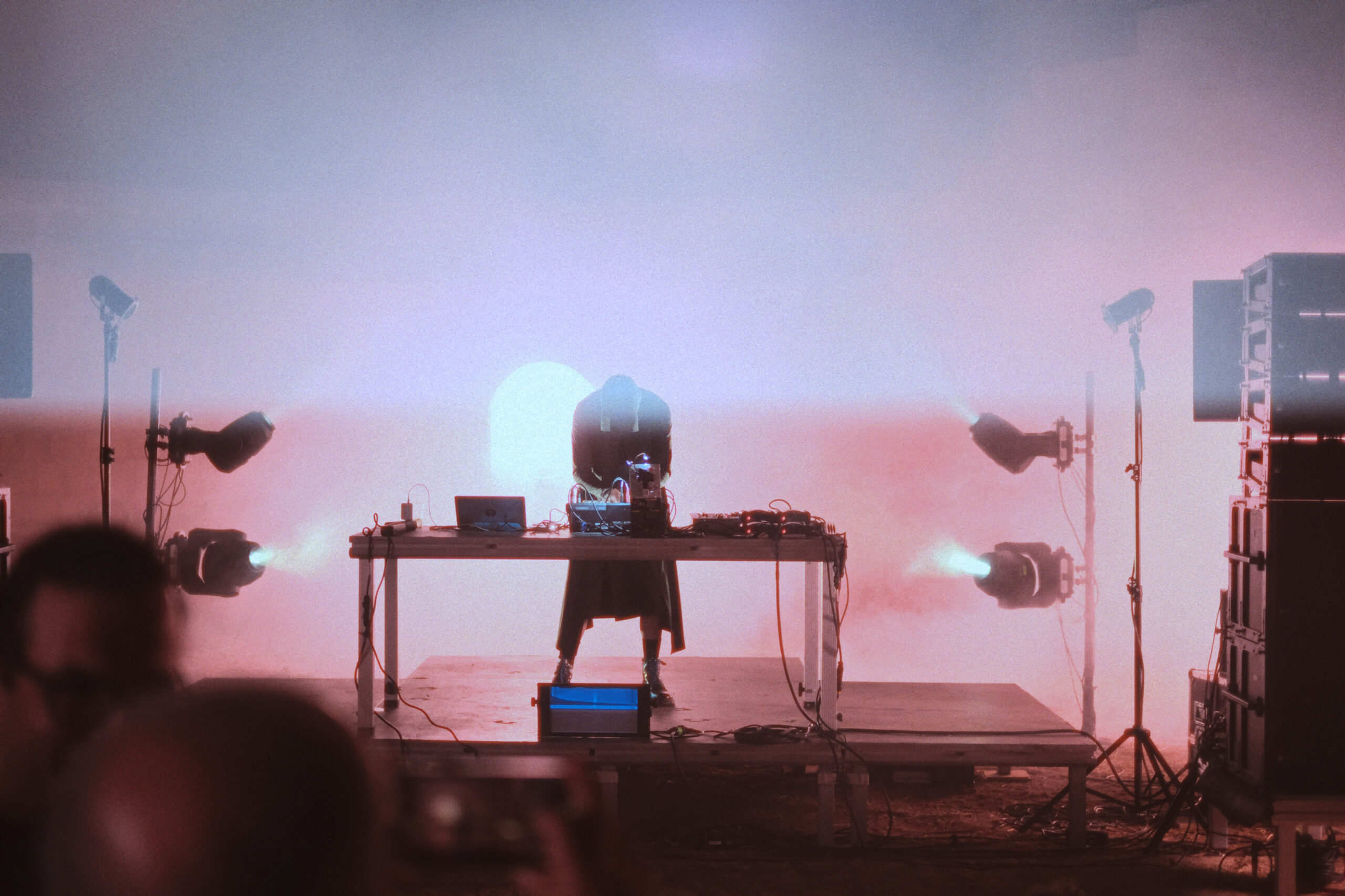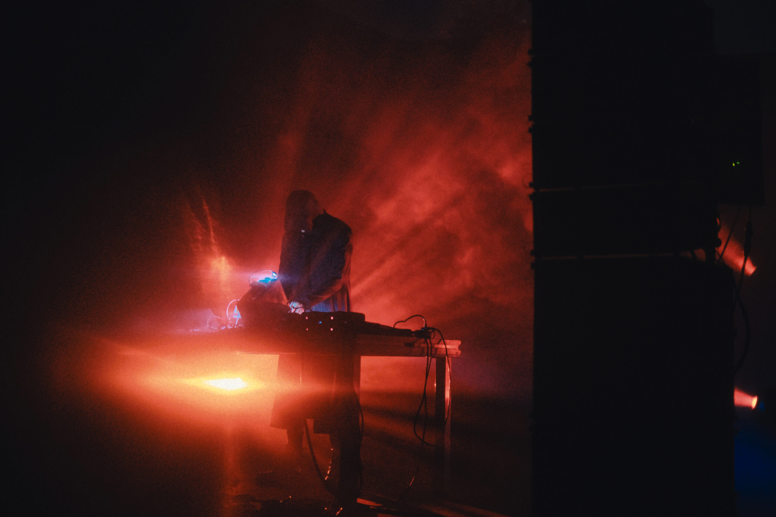 Δίπλα στον Ayers, ο ILIOS (Δημήτρης Καρυοφύλλης) παρουσίασε ένα από τα πιο καθηλωτικά live acts του φεστιβάλ, οδηγώντας το κοινό σε μια μυσταγωγική, σωματική εμπειρία. Από τις αρχές του ’90 δραστηριοποιείται στην ηχητική και οπτική τέχνη, με έργα που ξεπερνούν τα όρια του ακουστικού φάσματος και του χώρου.