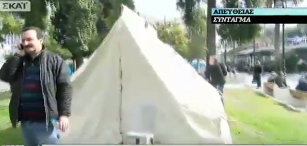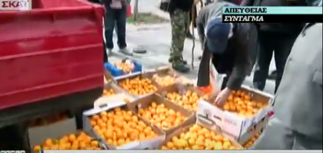 Στο Σύνταγμα βρίσκονται αγρότες του μπλόκου των Μεγάλων Χωραφιών οι οποίοι έχουν στήσει τις σκηνές τους ενώ με αγροτικό τους μοιράζουν μανταρίνια στους περαστικούς και τους ενημερώνουν για τον αγώνα τους.