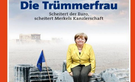 «Η κυρία των ερειπίων» είναι ο τίτλος του περιοδικού με τον υπότιτλο να σημειώνει: «αν αποτύχει το ευρώ, αποτυγχάνει και η καγκελάριος Μέρκελ».
