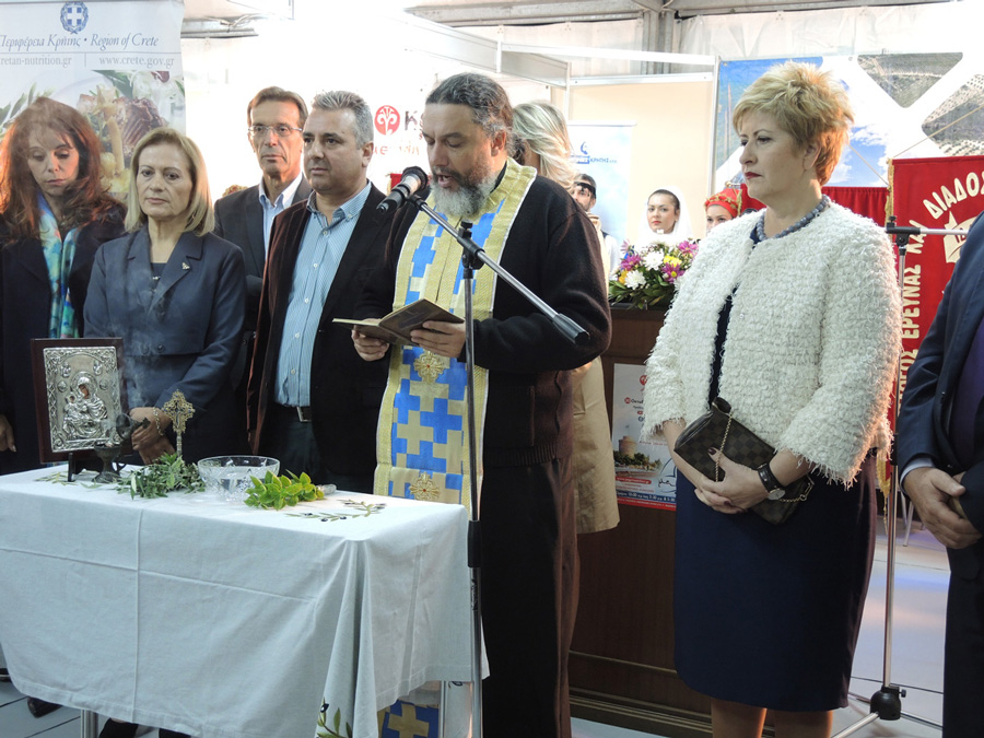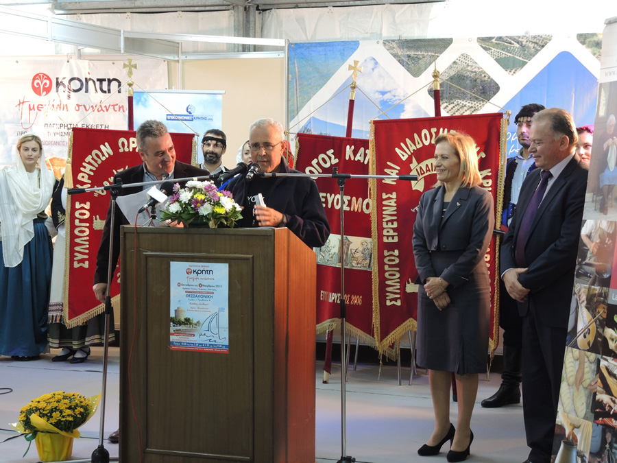 Τα εγκαίνια πραγματοποιήθηκαν, από την Υπουργό Μακεδονίας – Θράκης, κ. Μαρία Κόλλια-Τσαρουχά, παρουσία του βουλευτή κ. Κώστα Ζουράρι, της Αντιπεριφερειάρχη Κρήτης κ. Θεανώς Βρέντζου, της Αντιπεριφερειάρχη Κεντρικής Μακεδονίας κ. Βούλας Πατουλίδου , του προέδρου της Διεθνούς Εκθέσεως Θεσσαλονίκης κ. Αναστάσιου Τζίκα, του πρώην προέδρου του ΕΦΕΤ κ. Νίκου Κατσαρού, του Περιφερειακού Συμβούλου Κρήτης κ. Κώστα Δανδουλάκη, της Περιφερειακού Συμβούλου Κεντρικής Μακεδονίας κ. Κατερίνας Ζωγράφου, εκπροσώπων όλων των Κρητικών Πολιτιστικών Σωματείων της Θεσσαλονίκης, αλλά και πλήθους κόσμου.