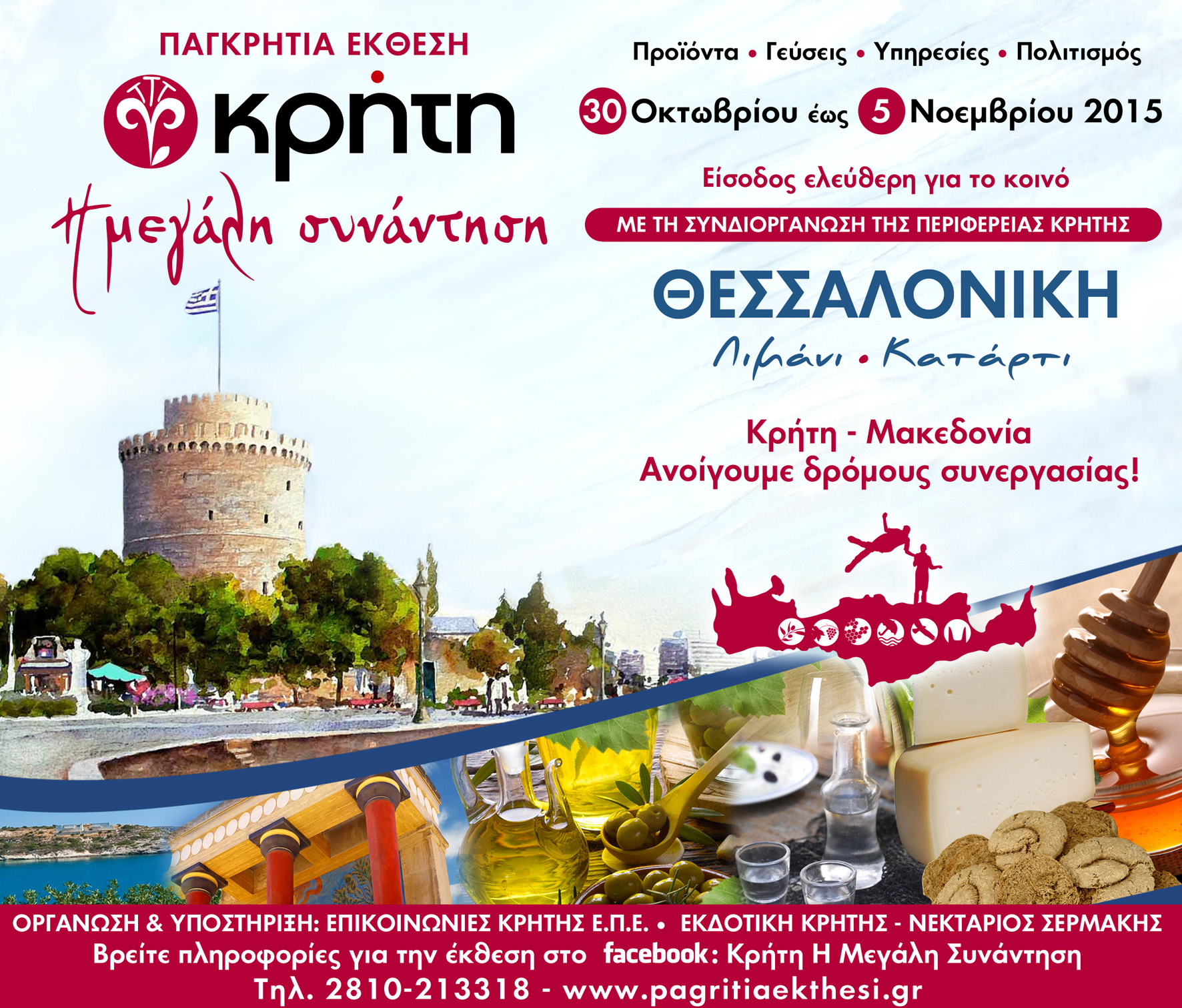 Η έκθεση αυτή, μετά τις τρεις επιτυχημένες διοργανώσεις στην Αττική, τώρα ταξίδεψε και στη Θεσσαλονίκη, με στόχο την προώθηση των Κρητικών προϊόντων και γενικότερα την προβολή της Κρήτης στην περιοχή της Βόρειας Ελλάδας.