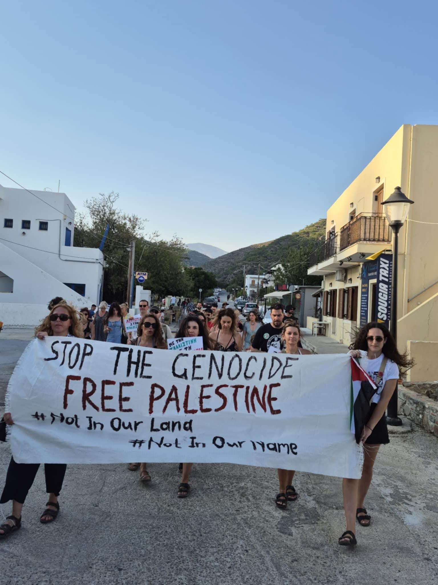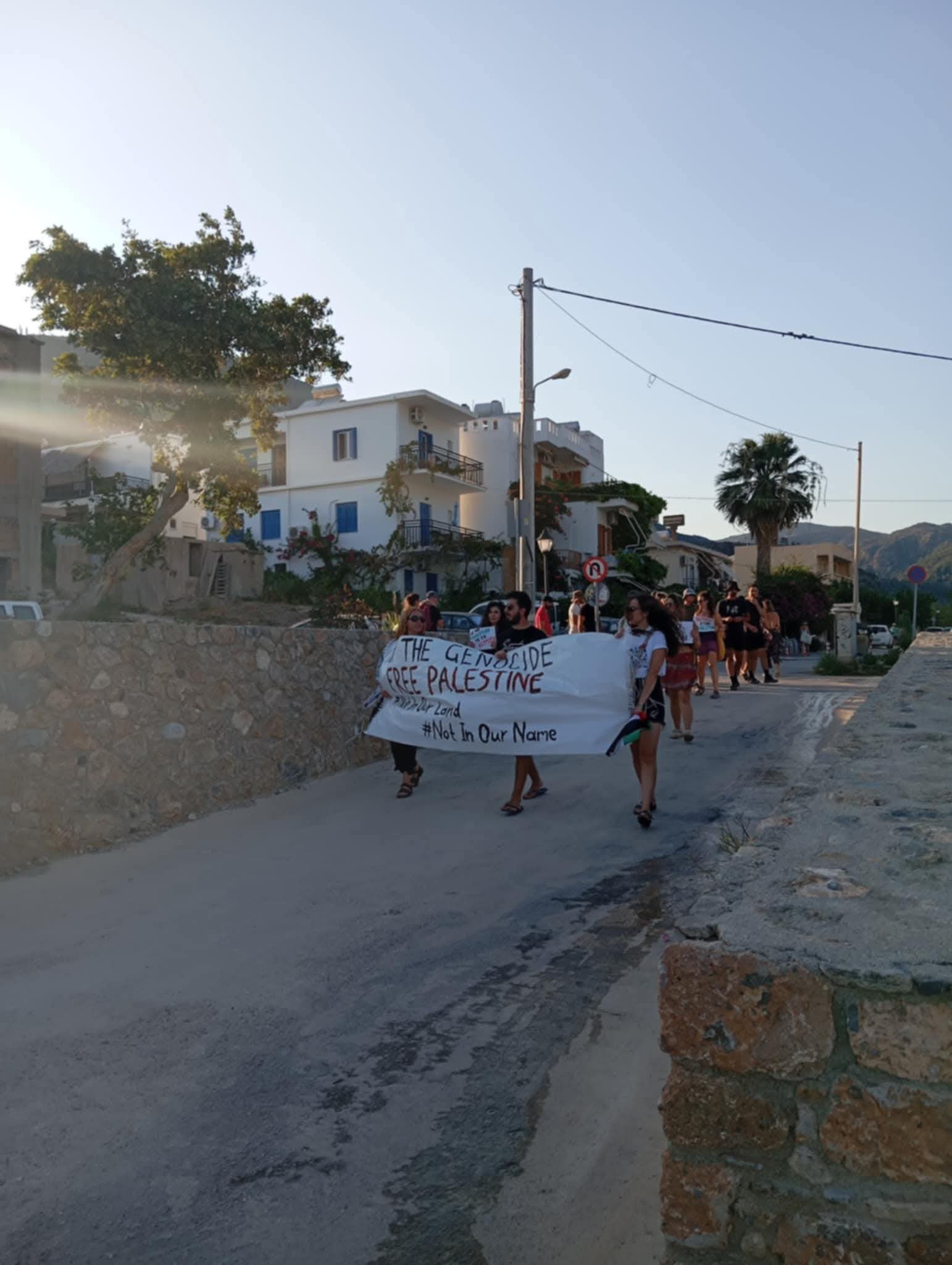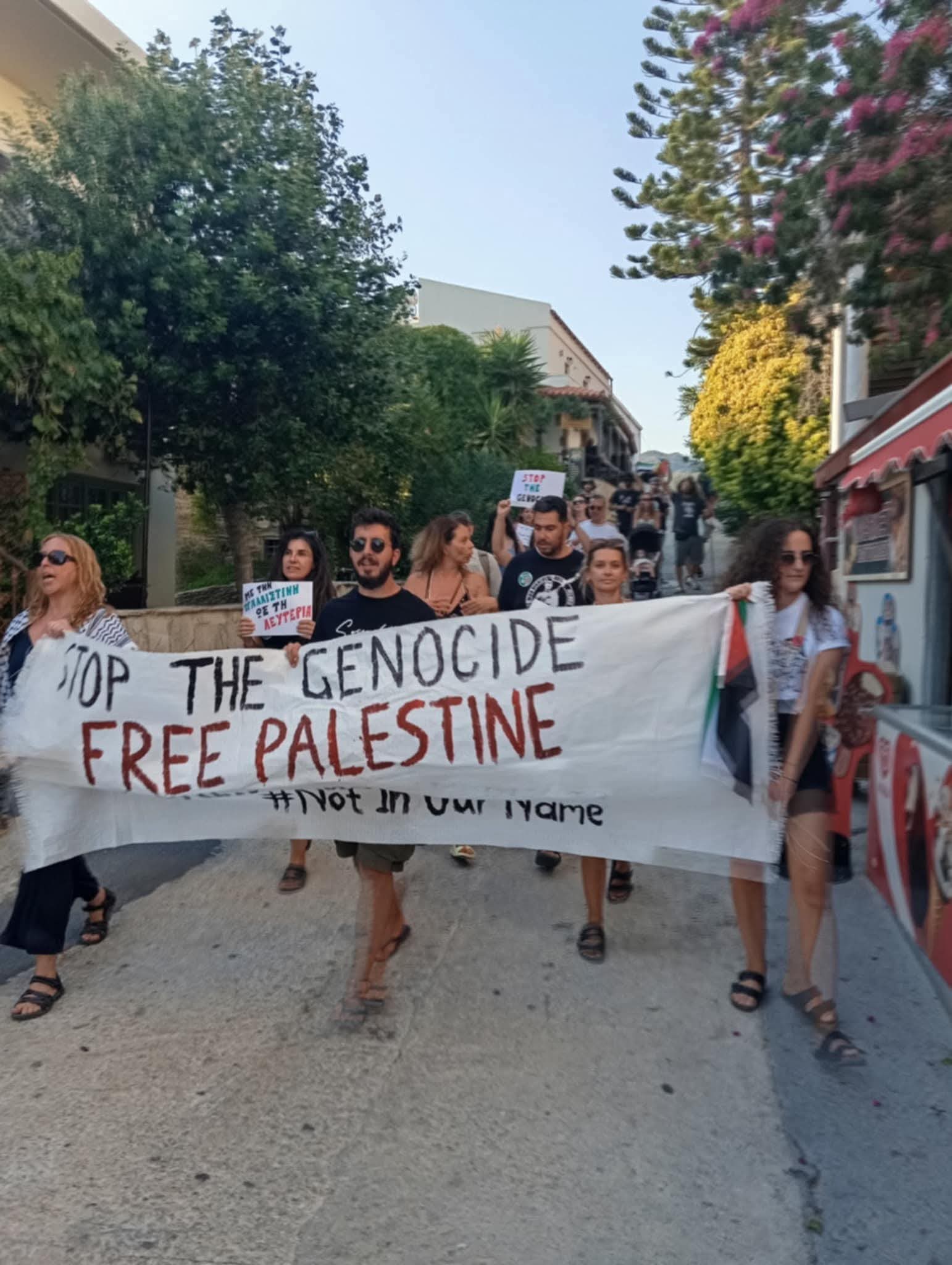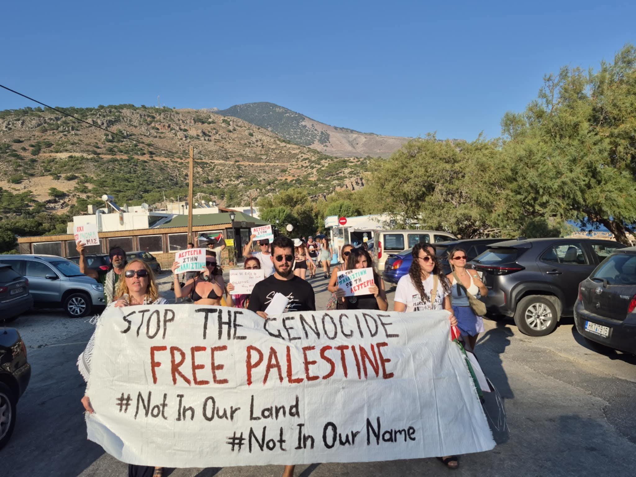 Η Σούγια, ένα από τα πιο δημοφιλή καλοκαιρινά καταφύγια της Νότιας Κρήτης, μετατράπηκε το απόγευμα της 10ης Αυγούστου σε χώρο δυναμικής διαμαρτυρίας ενάντια στη γενοκτονία που συντελείται στη Γάζα.