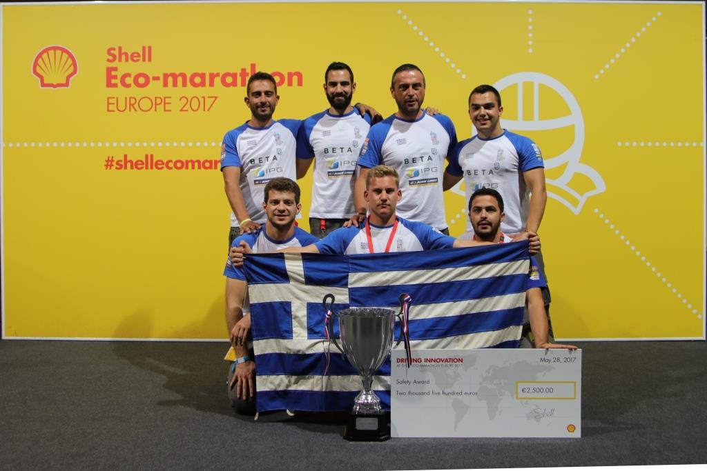 Δόθηκε μεγάλη σημασία στις προδιαγραφές ασφαλείας οδηγού και οχήματος. Αναπτύχθηκε, δοκιμάστηκε και τοποθετήθηκε πρωτότυπο σύστημα τηλεμετρίας που καθιστά εφικτή τη πρόσβαση, μέσω μιας ιστοσελίδας, σε ζωντανά δεδομένα από την κατάσταση του οδηγού και του οχήματος. Η συνεχής προσπάθεια της ομάδας να αντιμετωπίζει με απόλυτη σοβαρότητα όλα τα θέματα ασφάλειας στη σχεδίαση του οχήματος, στις κατασκευαστικές διαδικασίες, στις δοκιμές και κύρια στην αγωνιστική της παρουσία, δεν πέρασε απαρατήρητη. Για τέταρτη φορά στην αγωνιστική της πορεία κέρδισε το Βραβείο Ασφάλειας Οχημάτων και συγκέντρωσε διθυραμβικές κριτικές από την επιτροπή του διαγωνισμού.
