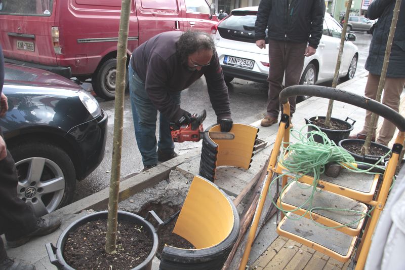 Ειδικότερα, συνεργεία προχώρησαν στη φύτευση είκοσι οκτώ δέντρων στα πεζοδρόμια , εξωραΐζοντας την οδό.