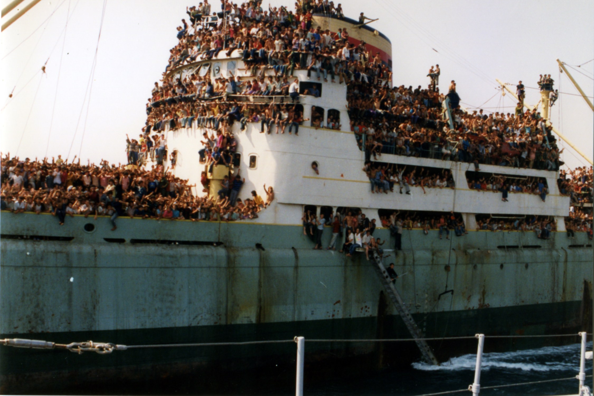 Σε μία κίνηση απελπισίας στο πλοίο άρχισαν να ανεβαίνουν απελπισμένοι Αλβανοί που μη έχοντας τι άλλο να κάνουν συγκεντρώνονταν κάθε ημέρα στο λιμάνι. Ο πραγματικός αριθμός των ανθρώπων που στοιβάχτηκαν άγνωστος. Οι πιο συντηρητικοί υπολογισμοί τους αναφέρουν στις 10.000 κάποιοι άλλοι τους ανεβάζουν στις 15.000 και κάποιοι άλλοι στις 20.000.
