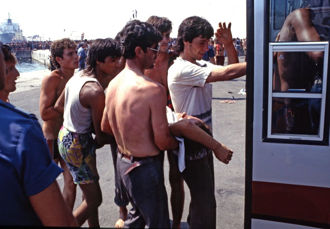 Σκαρφάλωναν από τα σκοινιά, από την μπουκαπόρτα, από όπου μπορούσαν και όταν πια και ο τελευταίος αποφασισμένος είχε ανέβει επάνω ανάγκασαν τον καπετάνιο να τους πάει στην Ιταλία. Όσοι τυχεροί είχαν ραδιόφωνα και τηλεοράσεις στην εποχή του Χότζα μάθαιναν από αυτά ιταλικά και πλέον πίστευαν ότι ήρθε η στιγμή να τα αξιοποιήσουν. Ούτε οι σφαίρες που έριχναν στον αέρα οι Αλβανοί αστυνόμοι που τους καλούσαν να κατέβουν από το πλοίο δεν τους σταματούσαν. Το πλοίο έλυσε και διέσχιζε την Αδριατική Θάλασσα από τα ανατολικά προς τα δυο.