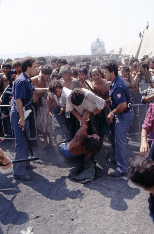 Και κάπου εκεί κάποιοι αστυνομικοί ανακοινώνουν στους εξαθλιωμένους Αλβανούς ότι πρόκειται να τους απελάσουν. Πίστευαν ότι προσφορά σε ρουχισμό και 50.000 λιρέτες (40 δολάρια ) θα τους ικανοποιούσε. Εκείνοι όμως εξαγριώνονται, σπάνε τα κιγκλιδώματα και ξεχύνονται στους γύρω δρόμους, μέσα σε λίγη ώρα όμως η αστυνομία με χρήση κλομπ και εκφοβιστικών πυροβολισμών τους συγκεντρώνει ξανά στο γήπεδο.
