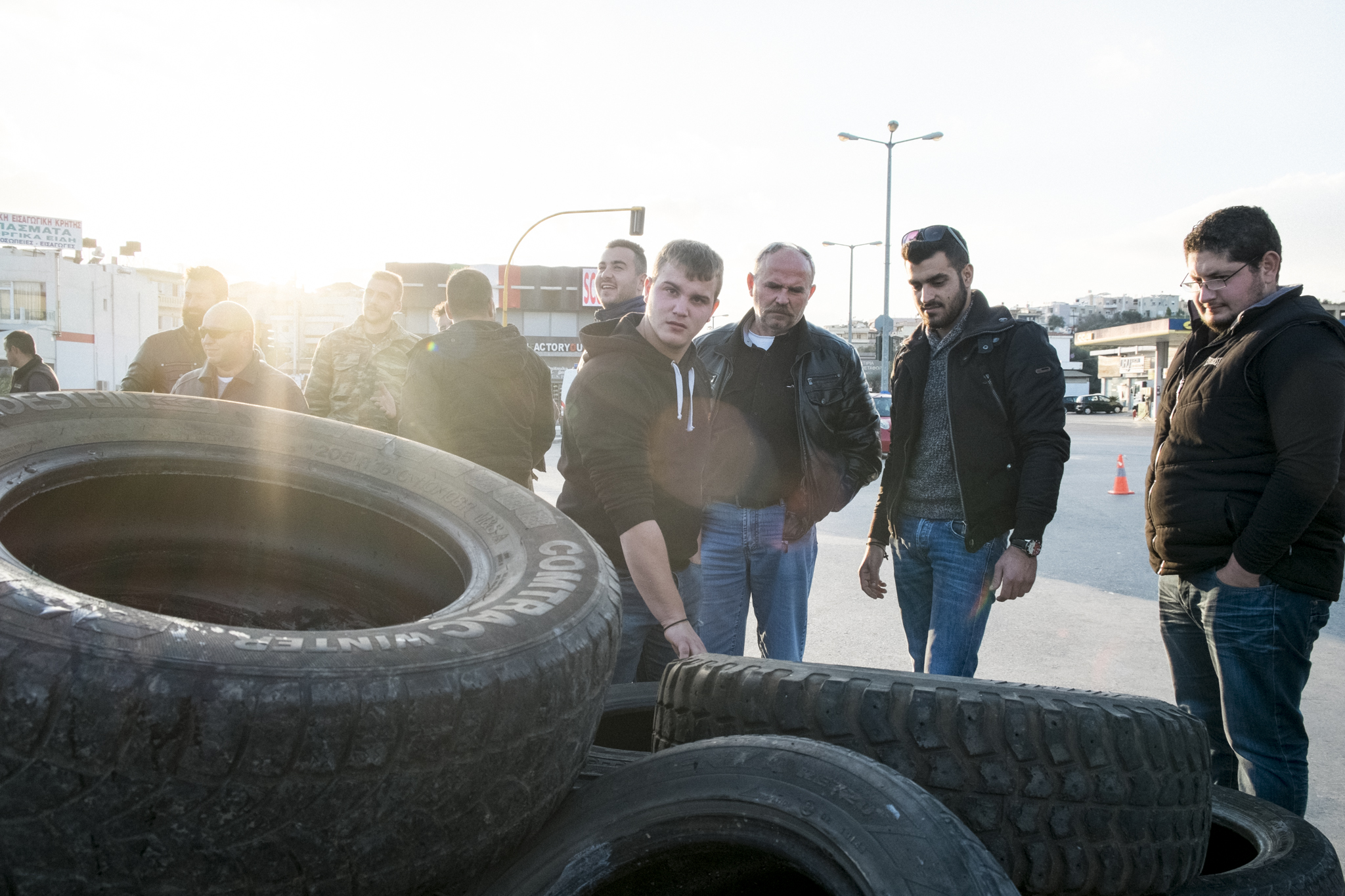 Οι αγρότες έκλεισαν το δρόμο στη γέφυρα του Κλαδισσού με λάστιχα, ξύλα και τα αμάξια τους, ανάρτησαν πανό και όσο βράδιαζε η παρουσία του κόσμου γινόταν πιο έντονα.