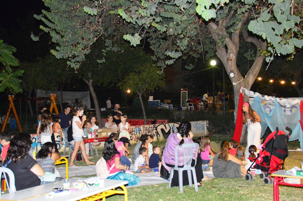 Το πρόγραμμα στην κεντρική σκηνή ξεκίνησε με παραδοσιακούς κρητικούς χορούς με τους πολιτιστικούς – χορευτικούς συλλόγους «Πελασγοί» και «Λαογραφικός Σύλλογος». Παράλληλα στον Παιδότοπο οι μικροί επισκέπτες του φεστιβάλ κατασκεύασαν μάσκες με ανακυκλώσιμα υλικά και ακολούθησε διαδραστικό ρώσικο παραμύθι με τη Ρούλα Τασοπούλου από την ομάδα ΠΥΓΟΛΑΜΠΙΔΑ.