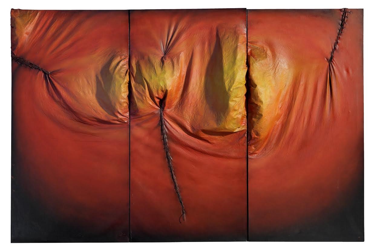 (Στάθης Λογοθέτης, Τρίπτυχο, 1972, Ακρυλικό σε καμβά, 3 μέρη, έκαστο 150 x 75 εκ.)