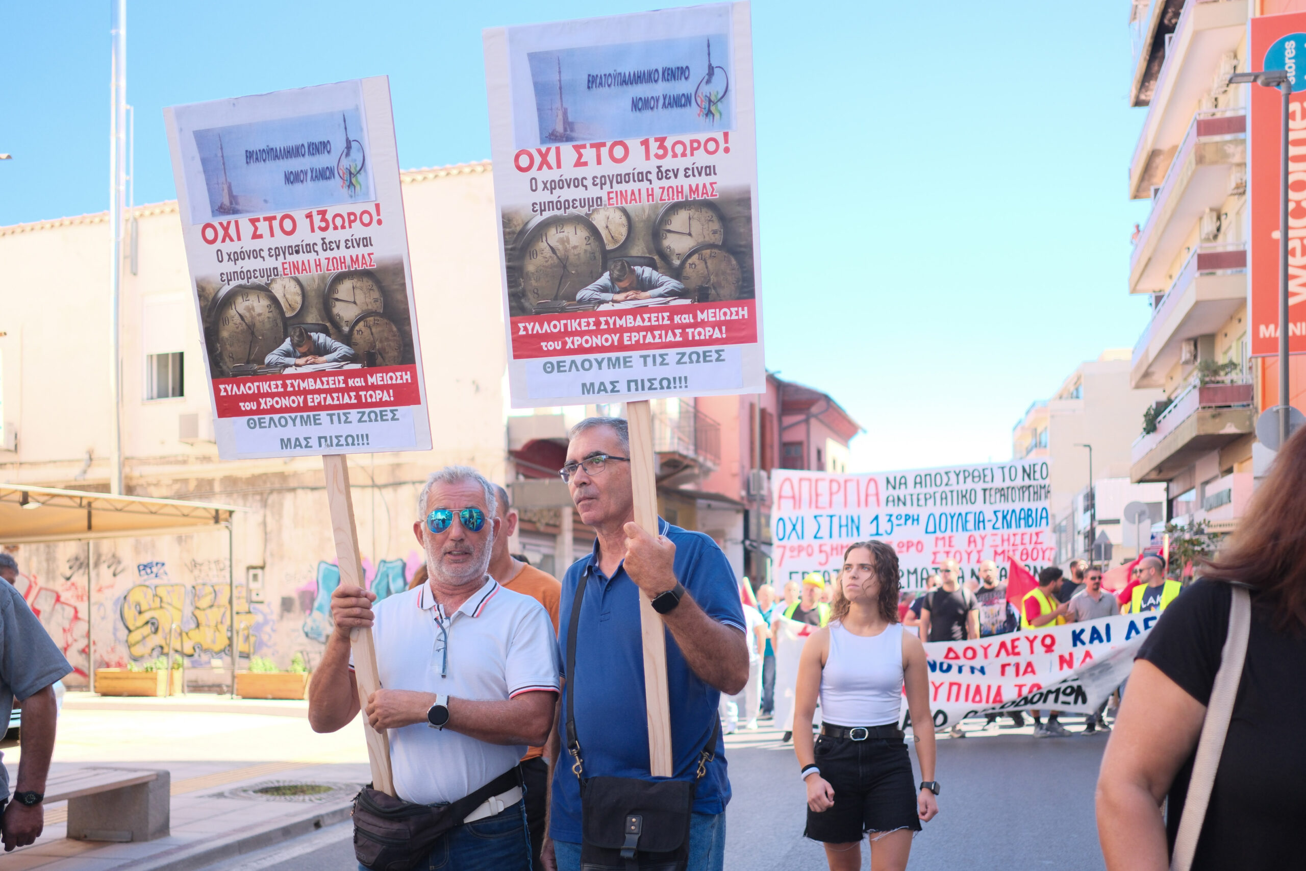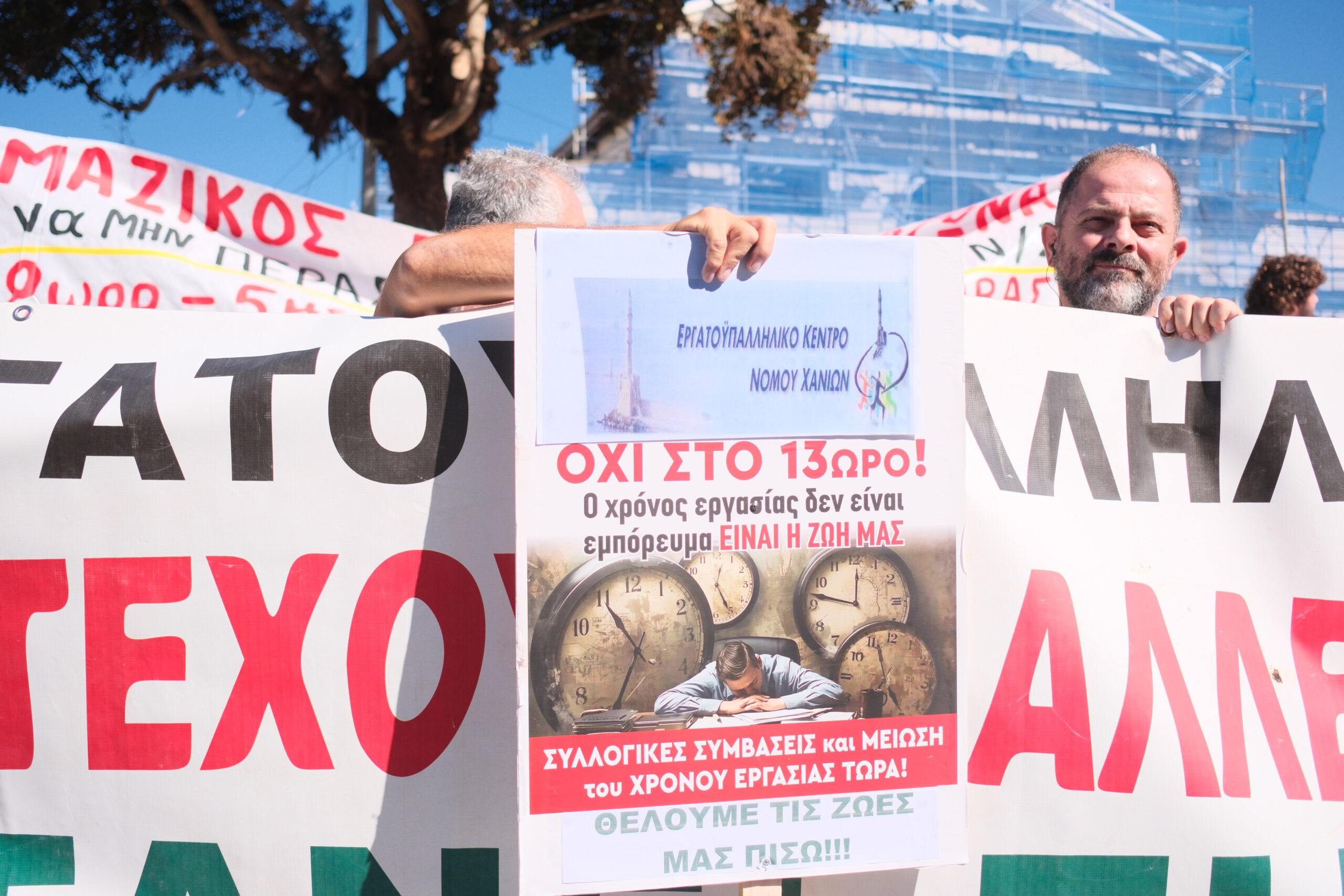 Ηχηρό μήνυμα εστάλη από τα Χανιά, όπου πλήθος εργαζομένων από τον δημόσιο και ιδιωτικό τομέα, φοιτητές, εκπαιδευτικοί, υγειονομικοί, αγρότες και έμποροι συγκεντρώθηκαν το πρωί της Τρίτης στην Πλατεία Δημοτικής Αγοράς, συμμετέχοντας δυναμικά στην πανελλαδική 24ωρη απεργία ενάντια στο νέο εργασιακό νομοσχέδιο της κυβέρνησης.