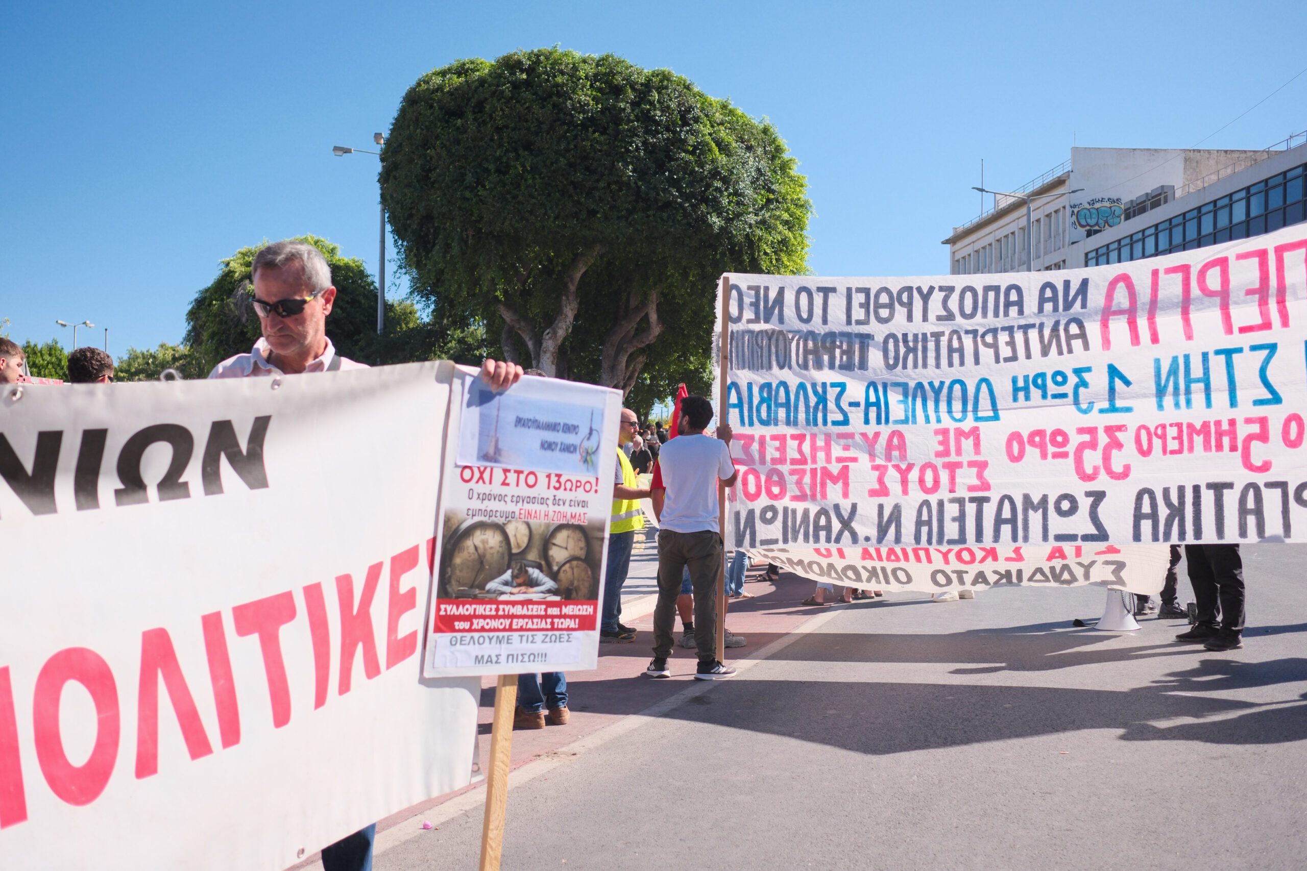 «Ζούμε για να δουλεύουμε και δεν μας φθάνουν για να ζήσουμε. Όλα τα νοικοκυριά, για να καταφέρουν να βγει ο μήνας για αυτούς και τα παιδιά τους, δουλεύουν νύχτα-μέρα. Και η κυβέρνηση φέρνει το νομοσχέδιο για 13 ώρες δουλειά».