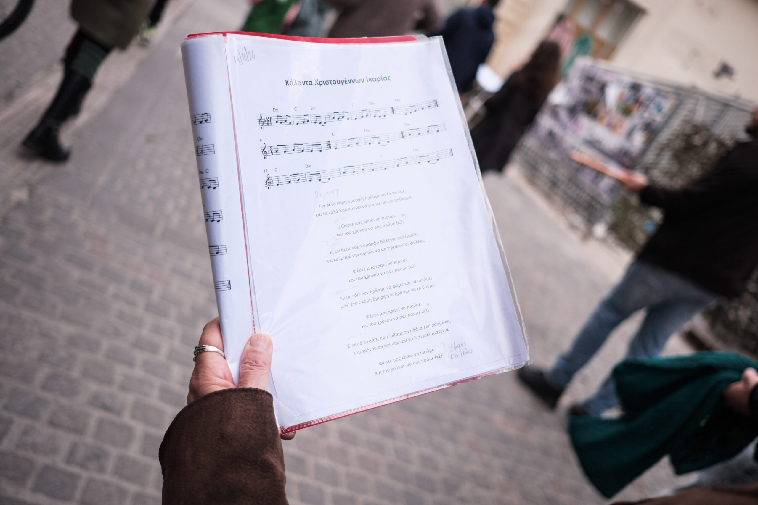 Μέσα στον βουητό της εορταστικής αγοράς και της αυξημένης κίνησης, οι ήχοι από τα Ικαριώτικα κάλαντα λειτούργησαν ως κάλεσμα συσπείρωσης, δημιουργώντας μια ατμόσφαιρα κατάνυξης και χαράς που ξάφνιασε ευχάριστα τους περαστικούς.