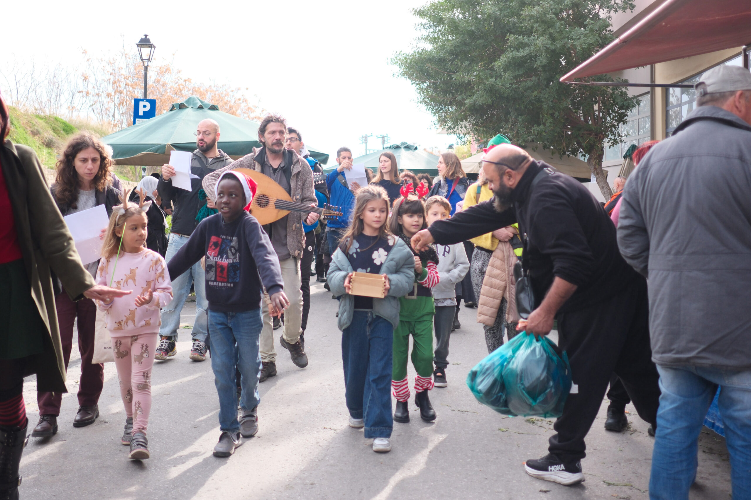 Η πρωτοβουλία εξελίχθηκε σε μια πολυπληθή μουσική πομπή. Πέρα από τον βασικό πυρήνα της κολεκτίβας, πλήθος άλλων μουσικών και πολιτών πλαισίωσαν τη δράση, ενισχύοντας τη φωνητική και ορχηστρική δύναμη του συνόλου. Ιδιαίτερο χρώμα στην εκδήλωση έδωσε η παρουσία μικρών παιδιών, τα οποία, τηρώντας το έθιμο, κρατούσαν τα παραδοσιακά καλαθάκια για τη συλλογή του οβολού από όσους επιθυμούσαν να συνεισφέρουν, προσδίδοντας μια νότα αυθεντικότητας και νοσταλγίας στο δρώμενο.